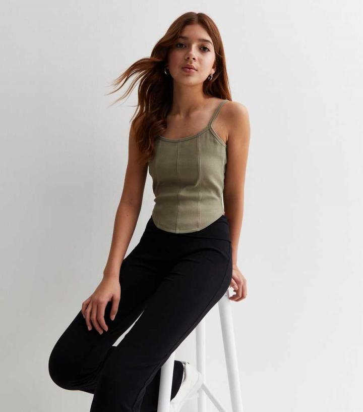 Tops | New Look Girls Olive Ribbed Strappy Corset Top
