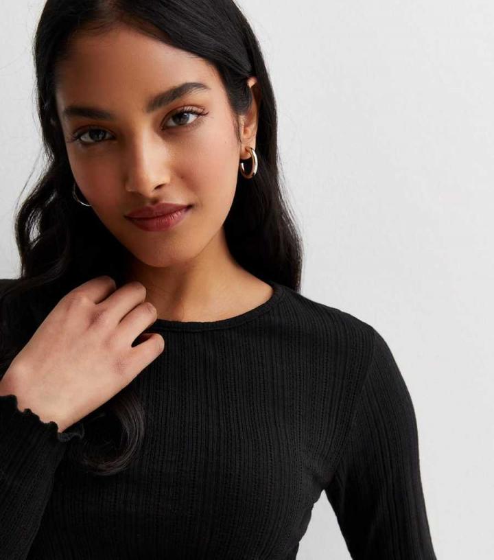 Tops | New Look Womens Black Pointelle Long Sleeve Top