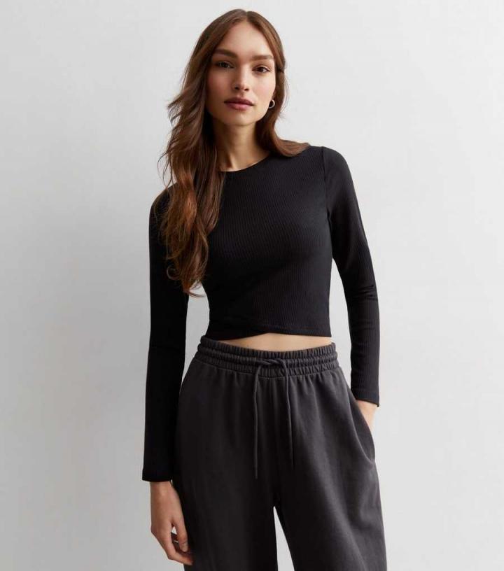 Tops | New Look Womens Black Ribbed Cross Over Hem Crop Top