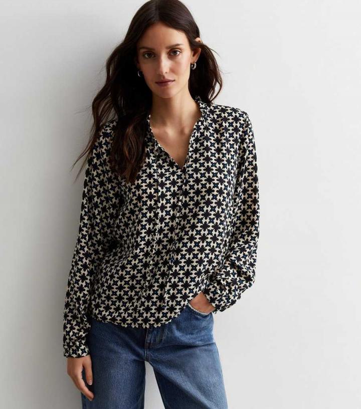 Tops | New Look Womens JDY Black Floral Tie Neck Top