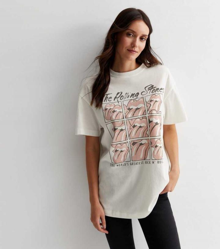 Tops | New Look Womens Off White Cotton The Rolling Stones Logo Oversized T-Shirt