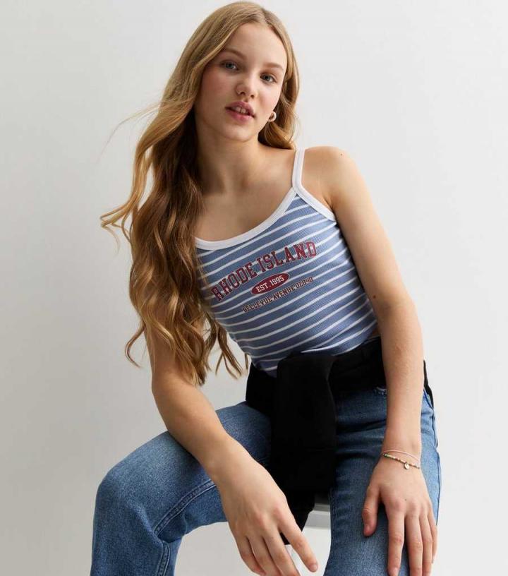 Tops | New Look Girls Blue Striped Rhode Island Crop Vest Top