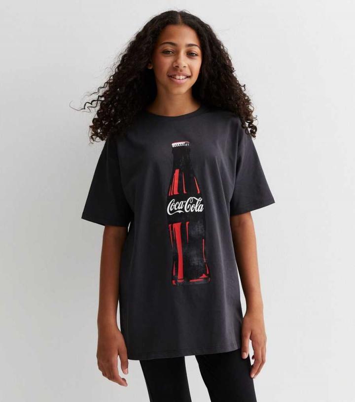 Tops | New Look Girls Dark Grey Cotton Coca Cola Logo Oversized T-Shirt