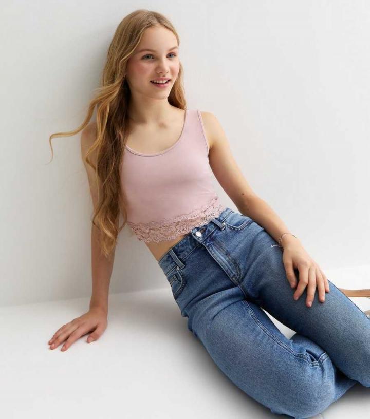 Tops | New Look Girls Pale Pink Lace Hem Bralette
