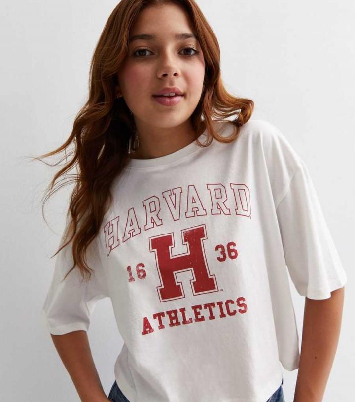Tops | New Look Girls White Cotton Harvard Logo T-Shirt