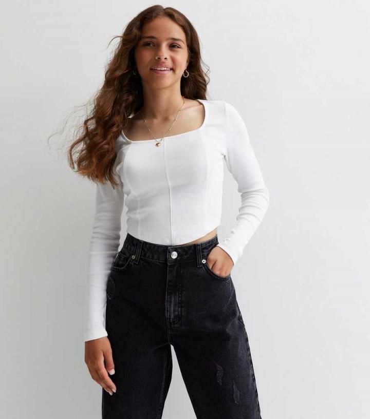Tops | New Look Girls White Square Neck Ribbed Corset Top