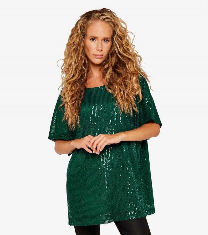 Tops | New Look Womens Apricot Green Sequin 1/2 Sleeve Top