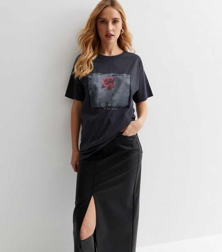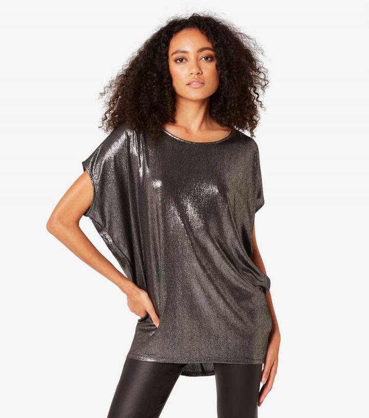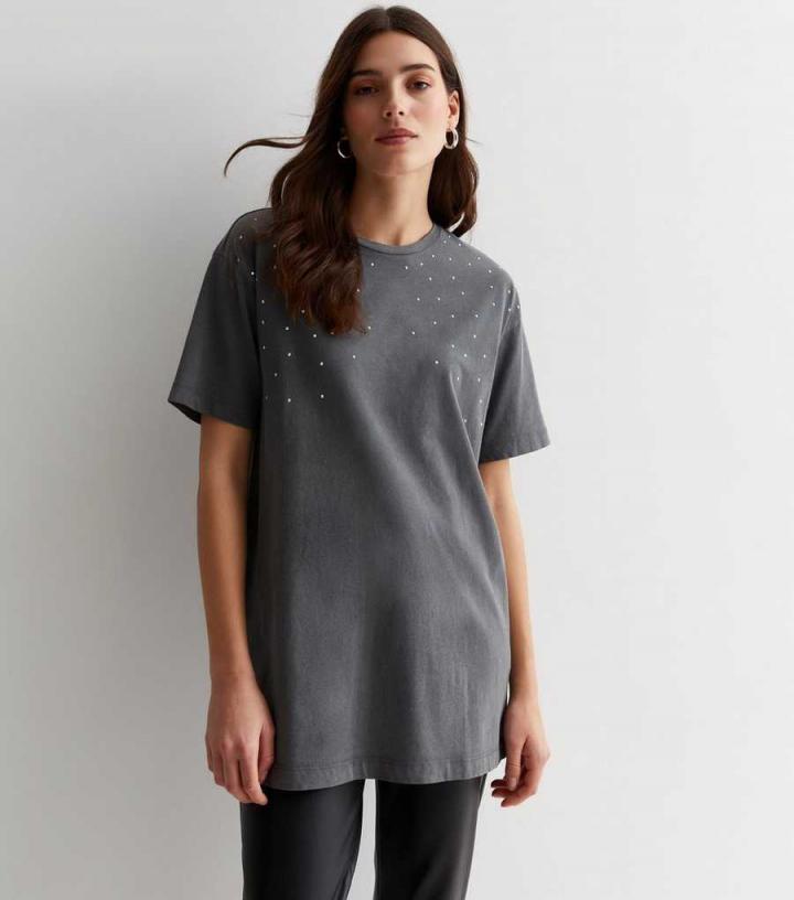 Tops | New Look Womens Dark Grey Cotton Stud Detail Oversized T-Shirt