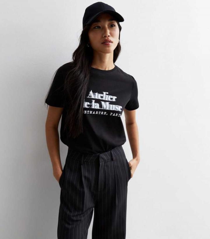 Tops | New Look Womens Black Cotton Atelier De La Muse Logo T-Shirt
