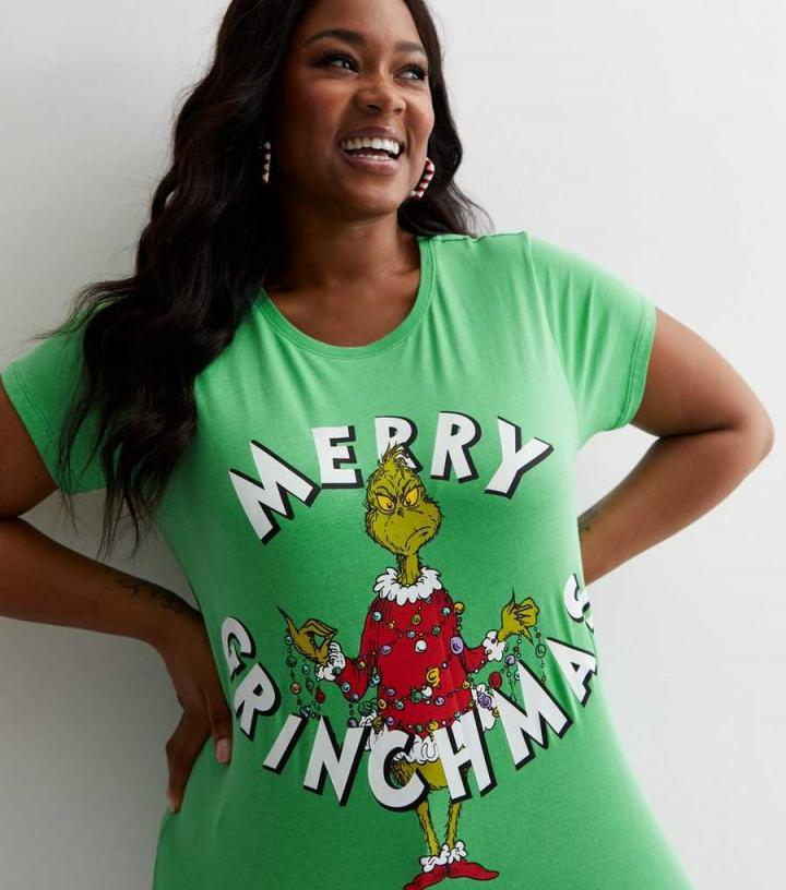 Tops | New Look Womens Curves Green Cotton Merry Grinchmas Logo T-Shirt