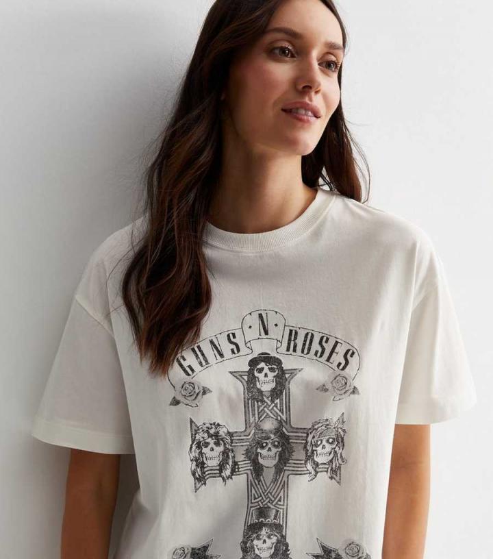Tops | New Look Womens Off White Cotton Guns N Roses Logo Oversized T-Shirt