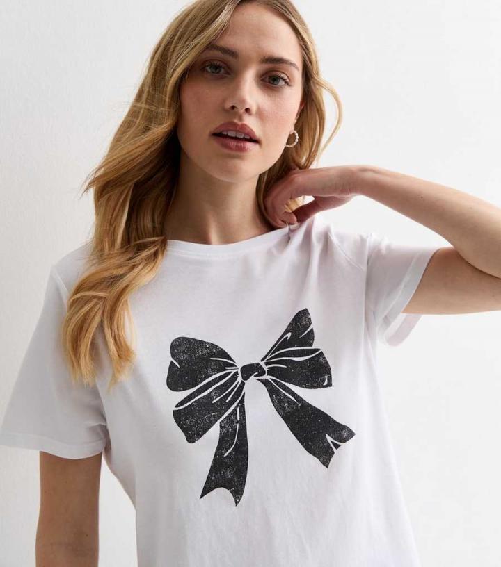 Tops | New Look Womens White Cotton Bow Logo T-Shirt