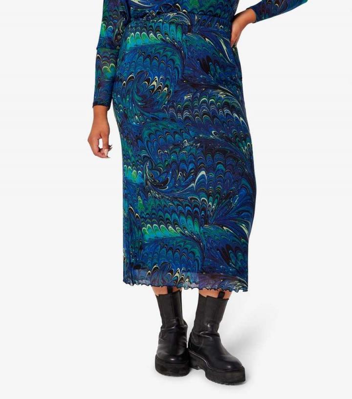 Trousers, Skirts & Shorts | New Look Womens Apricot Curves Blue Marble Print Mesh Midaxi Skirt