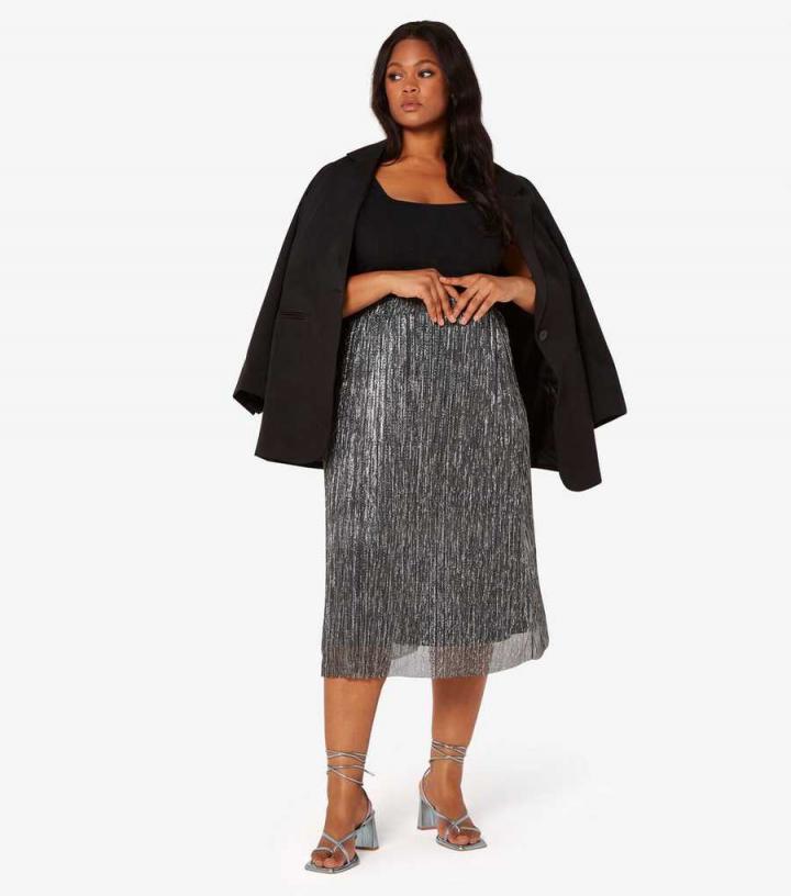 Trousers, Skirts & Shorts | New Look Womens Apricot Curves Pale Grey Plissé Midi Skirt