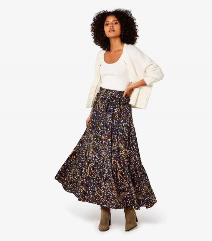 Trousers, Skirts & Shorts | New Look Womens Apricot Navy Paisley Print Tiered Midaxi Skirt