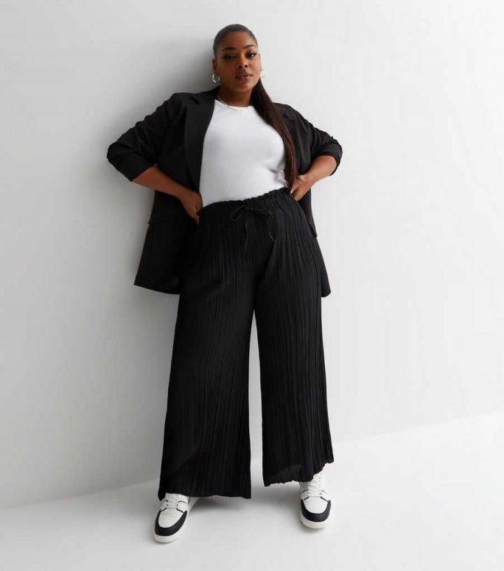 Trousers, Skirts & Shorts | New Look Womens Blue Vanilla Curves Black Pleated Wide Leg Trousers