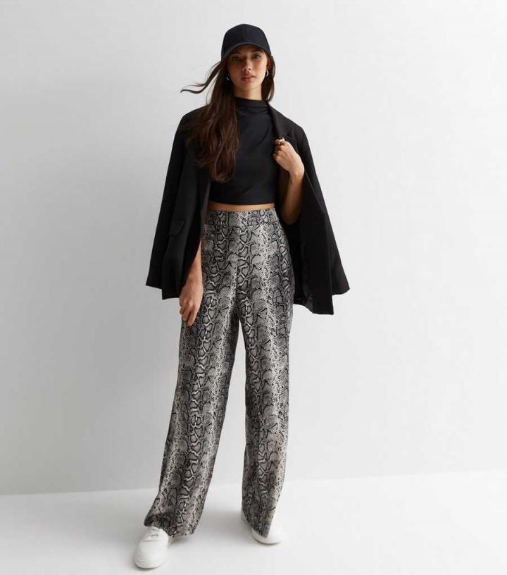 Trousers, Skirts & Shorts | New Look Womens Light Grey Snake Print Satin Wide Leg Trousers