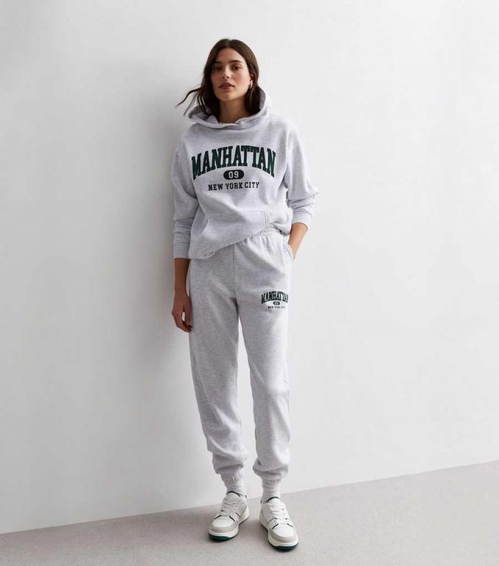 Trousers, Skirts & Shorts | New Look Womens Pale Grey Manhattan Logo Joggers