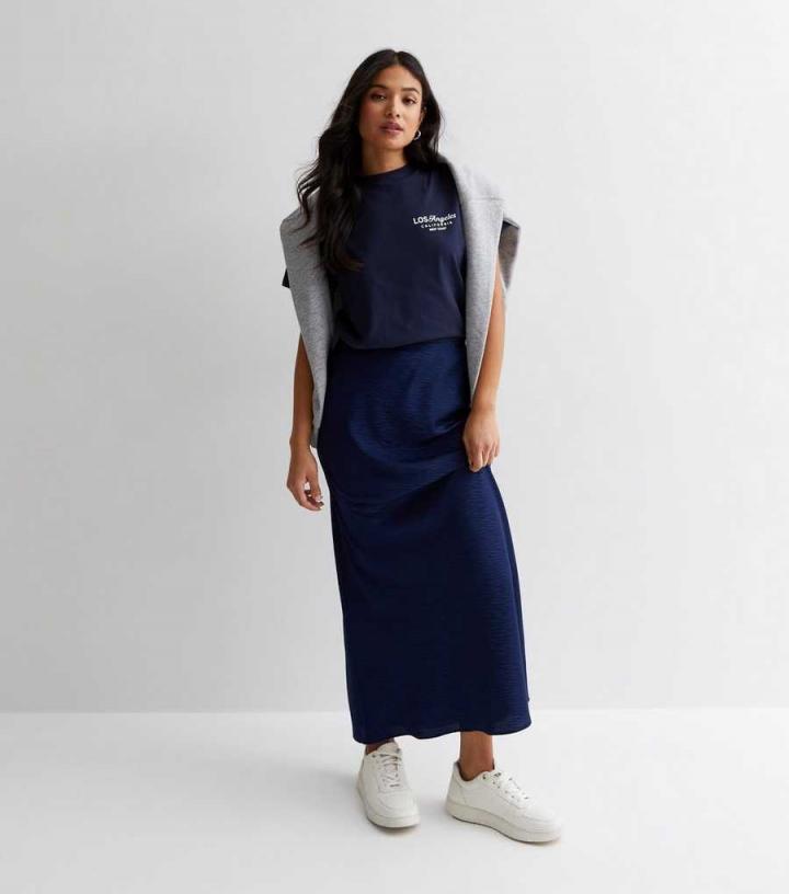 Trousers, Skirts & Shorts | New Look Womens Petite Indigo Jacquard Satin Bias Cut Maxi Skirt