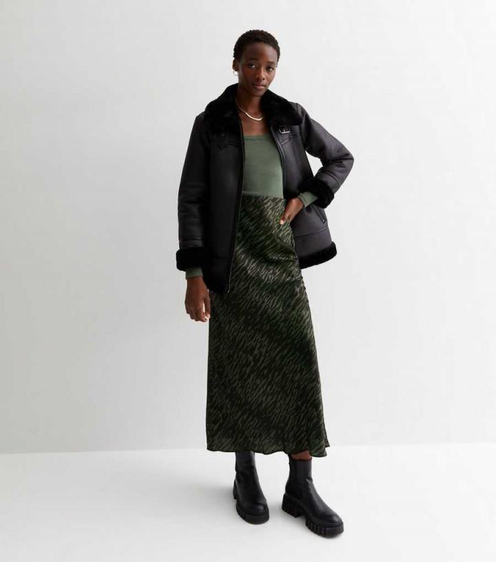 Trousers, Skirts & Shorts | New Look Womens Tall Green Satin Animal Print Bias Cut Midi Skirt