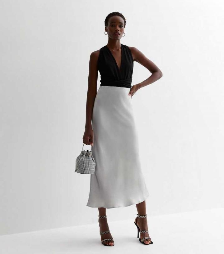 Trousers, Skirts & Shorts | New Look Womens Tall Silver Satin Midaxi Skirt