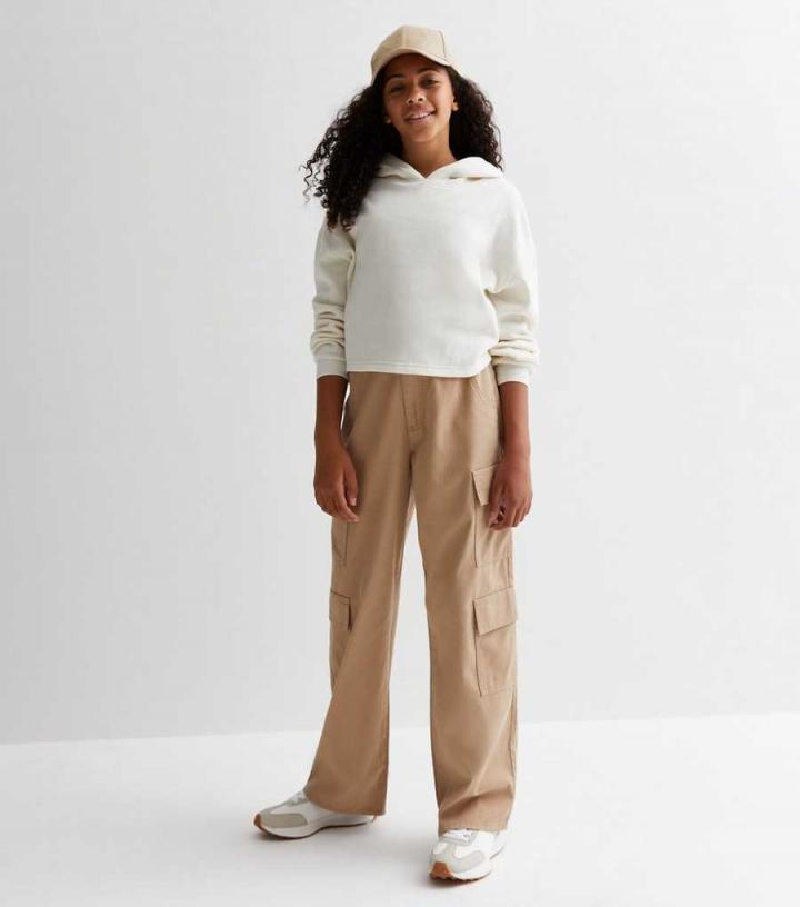 Trousers | New Look Girls Camel Cotton Wide Leg Cargo Trousers