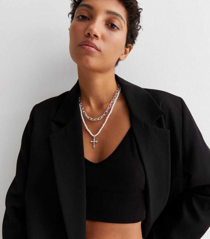 Jewellery | New Look Womens Silver Layered Faux Pearl Cross Pendant Necklace