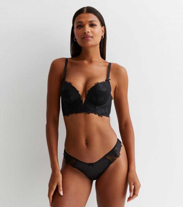 Lingerie | New Look Womens Black Floral Embroidered Push Up Corset Bra