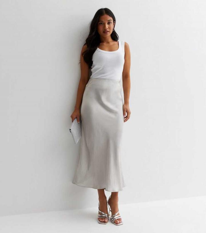 Trousers, Skirts & Shorts | New Look Womens Petite Silver Satin Midaxi Skirt